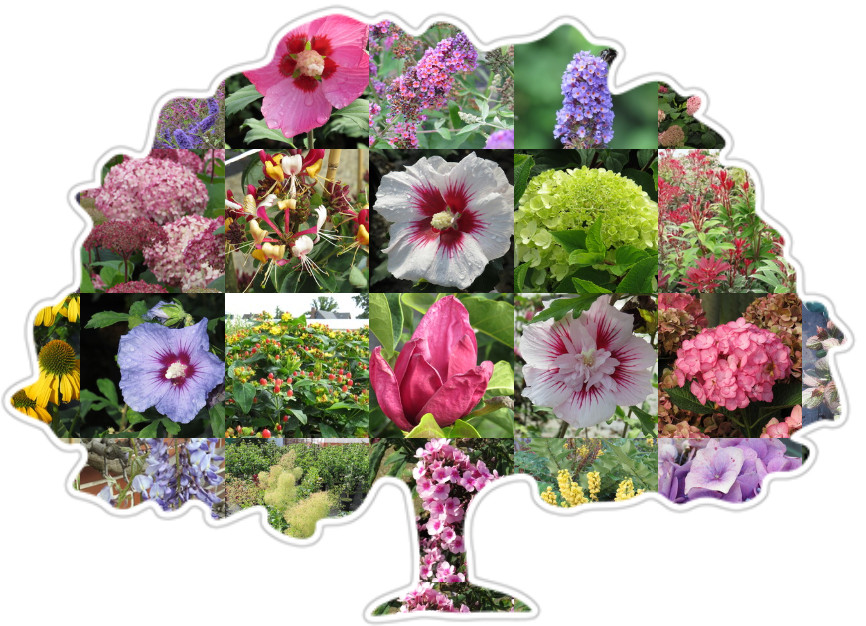 Blütensträucher, Immergrüne, Hortensien, Koniferen, Laubgehölze, Schlingpflanzen, Rhododendron & Azaleen, Gräser und Stauden.